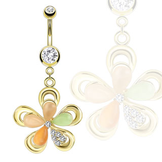 Банан фигурный из хирургической стали 316L с золотым покрытием, лепестки цветка сделаны из камня различных оттенков "Кошачий глаз"