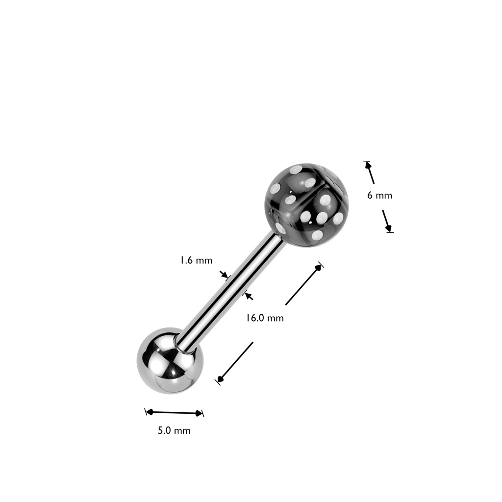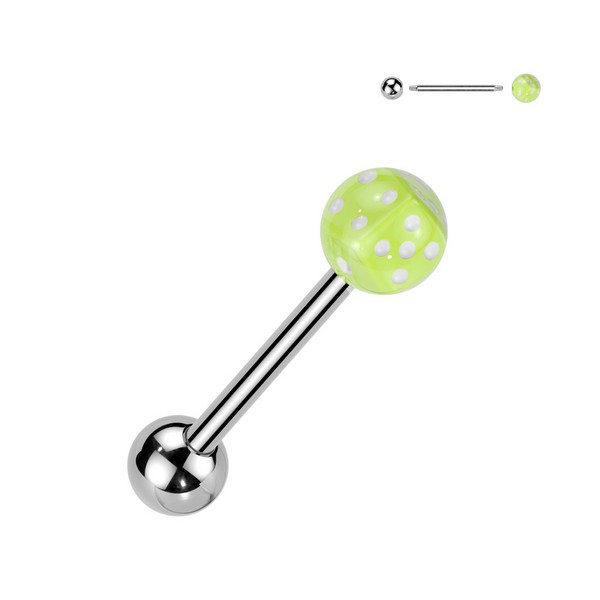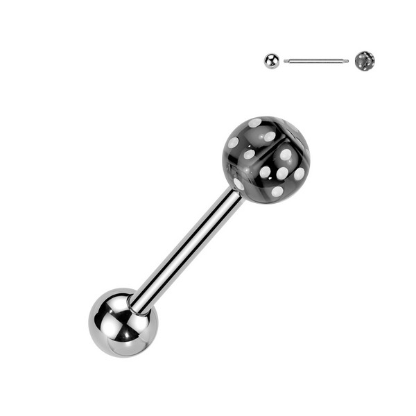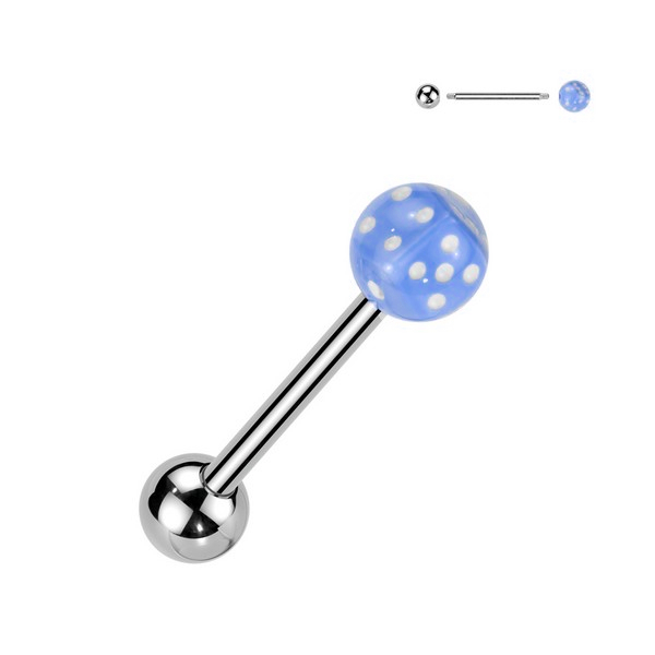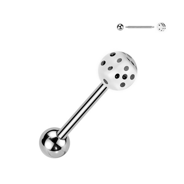 Штанга для языка из хирургической стали 316L с кубиком в прозрачном акриле.
