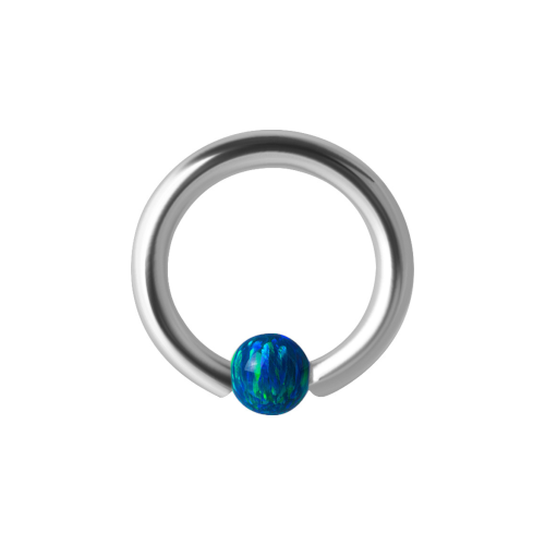 Кольцо из хирургической стали 316L с шариком из лабораторного опала.