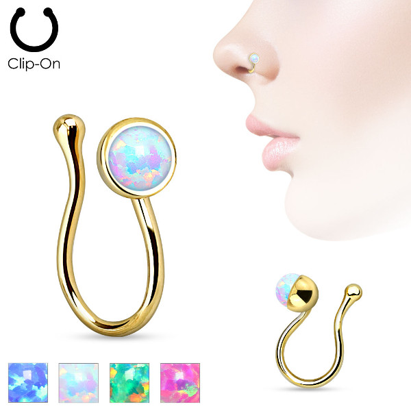 Обманка для крыла носа из родированной латуни с золотым IP покрытием. Украшена шариком с синтетическим опалом. Диаметр шарика - 3,9мм.