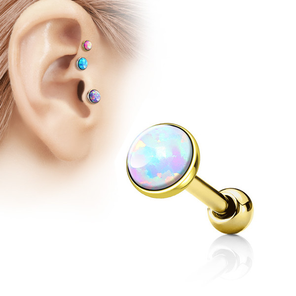 Микроштанга из хирургической стали 316L с золотым покрытием, уркашена лабораторным опалом.