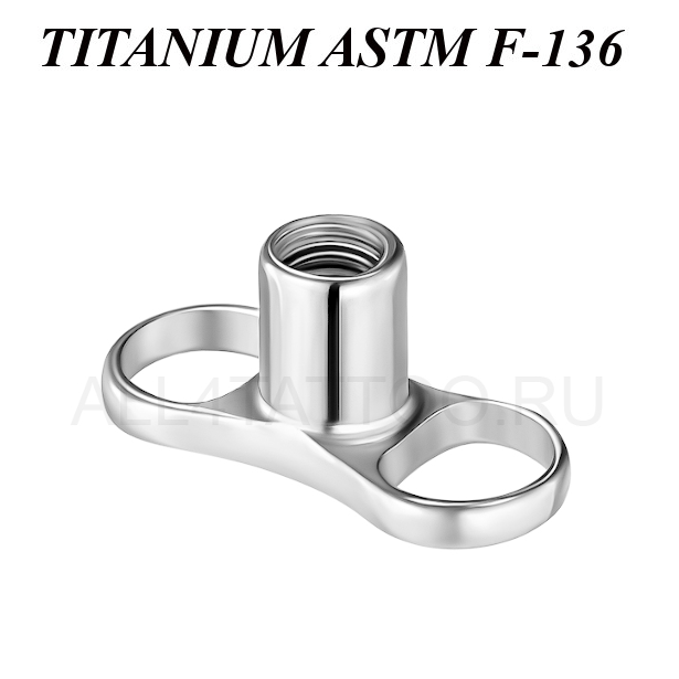 Мини якорь для микродермала из имплантационного титана ASTМ F-136  с двумя отверстиями. Толщина стойки микродермала 1.6мм, под накрутки с толщиной резьбы 1.2мм.
