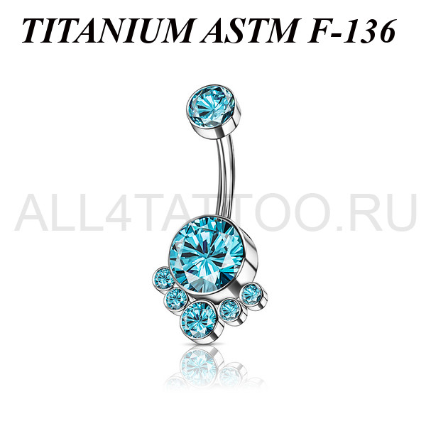 Банан с внутренней резьбой из имплантационного титана 6Al-4V-Eli ASTM: F-136. Украшен фианитами. Размер крупного нижнего кристалла: 8,2мм, верхнего: 5мм.