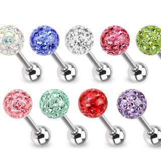 Штанга для языка из хирургической стали 316L, шарик со стразами покрытый прозрачным акрилом.