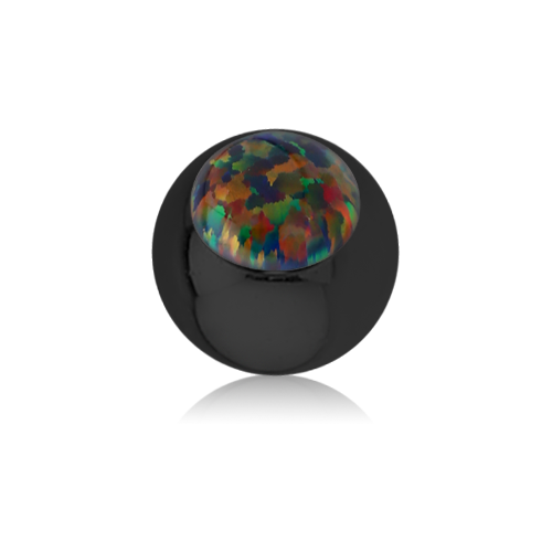 Шарик из хирургической стали 316L с чёрным PVD покрытием украшен лабораторным опалом. Подходит для украшений с внешней резьбой.