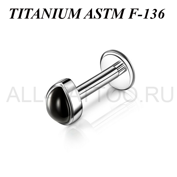 Лабрет из имплантационного титана 6Al-4V-Eli ASTM: F-136 с накруткой в форме капли, украшенной чёрным ониксом. Внутренняя резьба.