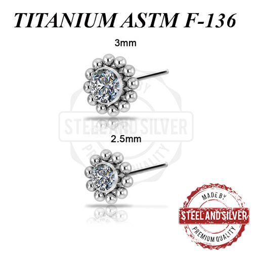 Вставка из имплантационного титана 6Al-4V-Eli ASTM: F-136 для безрезьбового украшения. Украшена кристаллами Premium Zirconia.