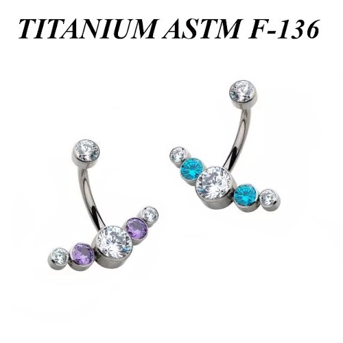 Банан из имплантационного титана 6Al-4V-Eli ASTM: F-136 с внутренней резьбой с кластером, украшенным фианитами. Размер кластера: 6,5х19мм.