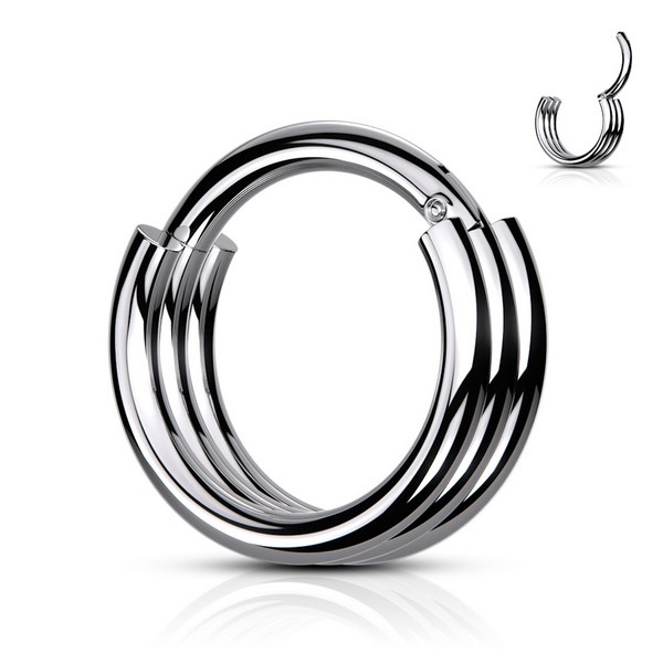 Кликер из хирургической стали 316L в виде тройного кольца.
