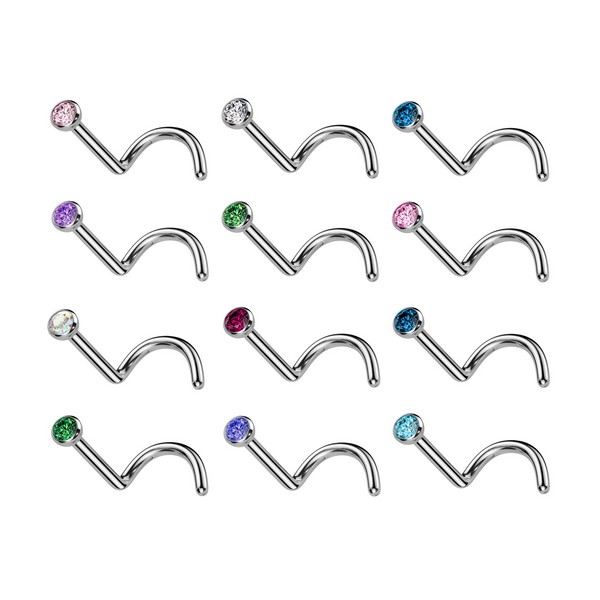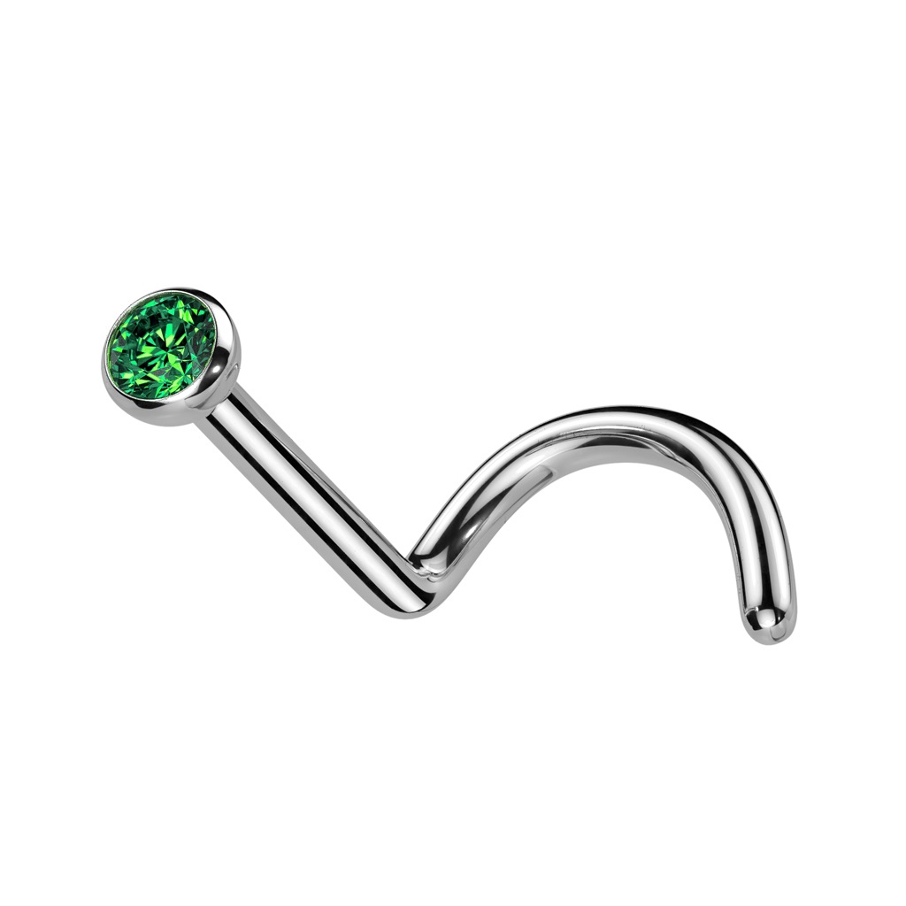Нострил из хирургической стали 316L украшен фианитом диаметром 2,5мм.