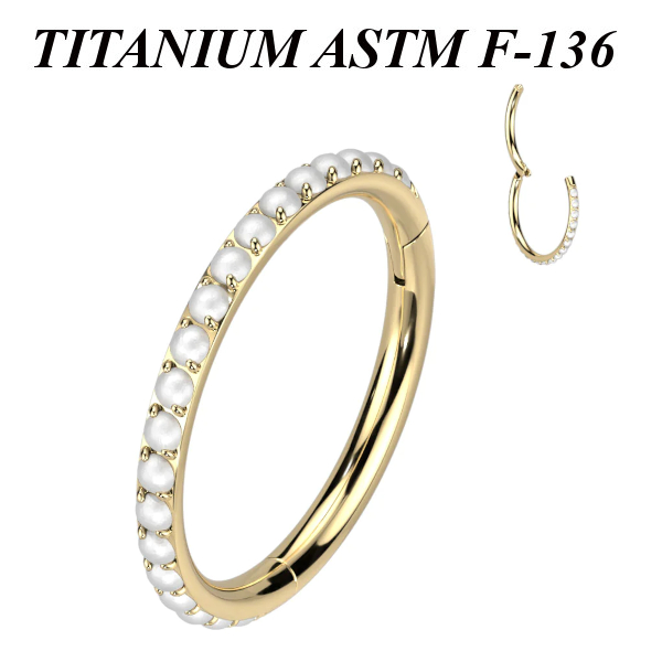 Кликер из имплантационного титана 6Al-4V-Eli ASTM: F-136 с искусственным жемчугом. Представлен в двух вариантах: классический титановый и с золотым PVD покрытием.