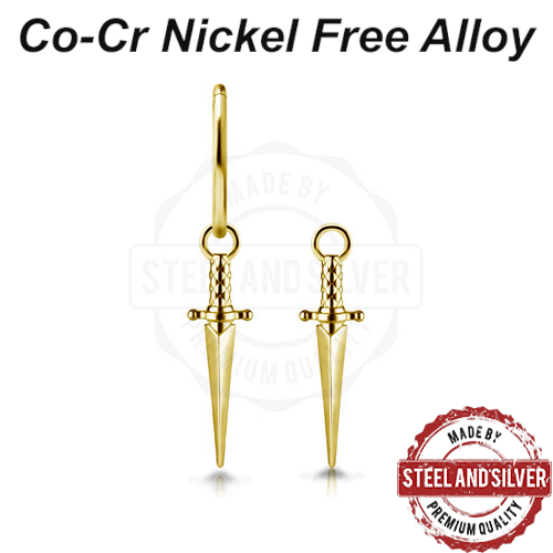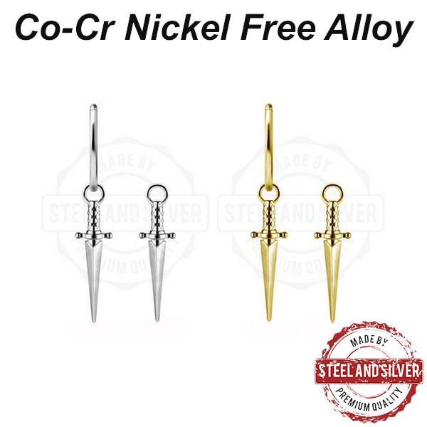 Подвеска из сплава кобальт-хрома, без содержания никеля. Представлена в двух вариантах: классического стального цвета и с 24х каратным золотым PVD покрытием. Подходит для колец толщиной не более 1,6мм.