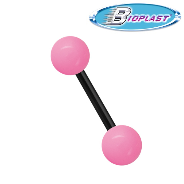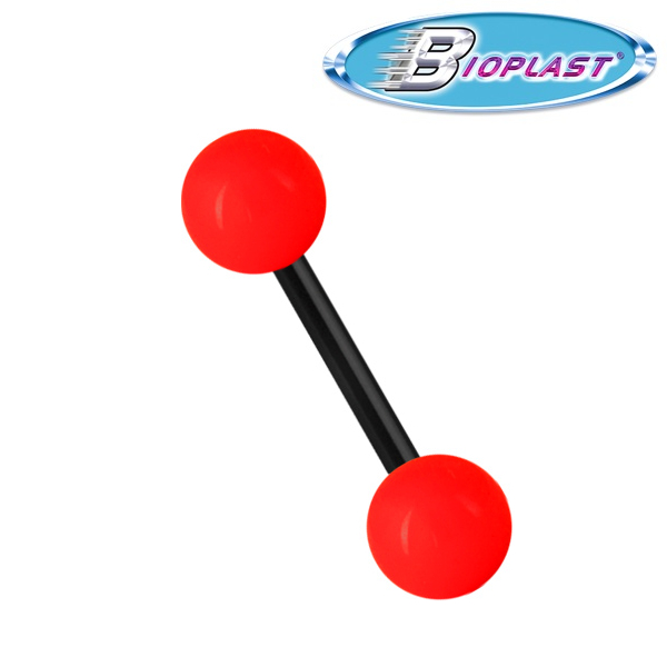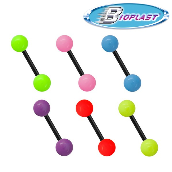 Штанга из биопласта с шариками из акрила яркого неонового цвета.