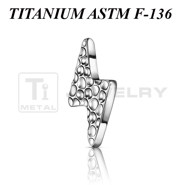 Накрутка из имплантационного титана 6Al-4V-Eli ASTM: F-136 в форме молнии с рельефными лунками. Размер накрутки: 7,3х4мм. Подходит для украшений с внутренней резьбой толщиной 1 и 1,2 мм.