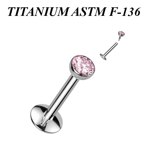 Лабрет с внутренней резьбой из имплантационного титана 6Al-4V-Eli ASTM: F-136. Украшен накруткой с фианитом.