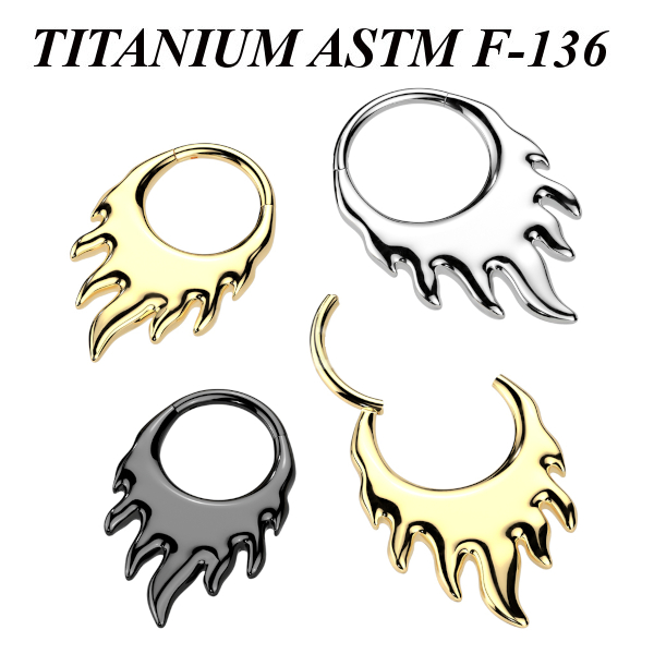 Кликер из имплантационного титана 6Al-4V-Eli ASTM: F-136 в форме пламени. Представлен в двух вариантах: классический стальной и с золотым PVD покрытием.