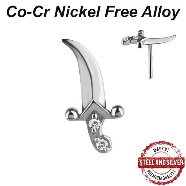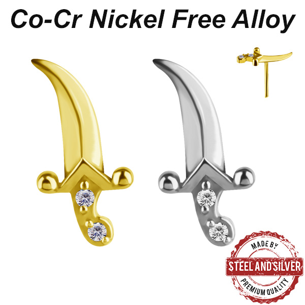 Вставка для безрезьбовых украшений из сплава кобальт-хрома, без содержания никеля. Украшена кристаллами Premium Cubic Zirconia. Представлена так же в варианте с 18-ти каратным PVD покрытием. Размер: 5,3х10,7мм.
