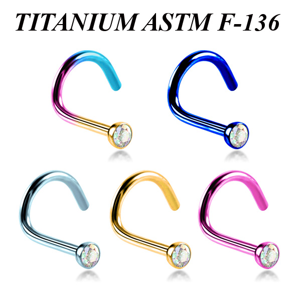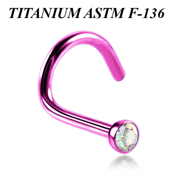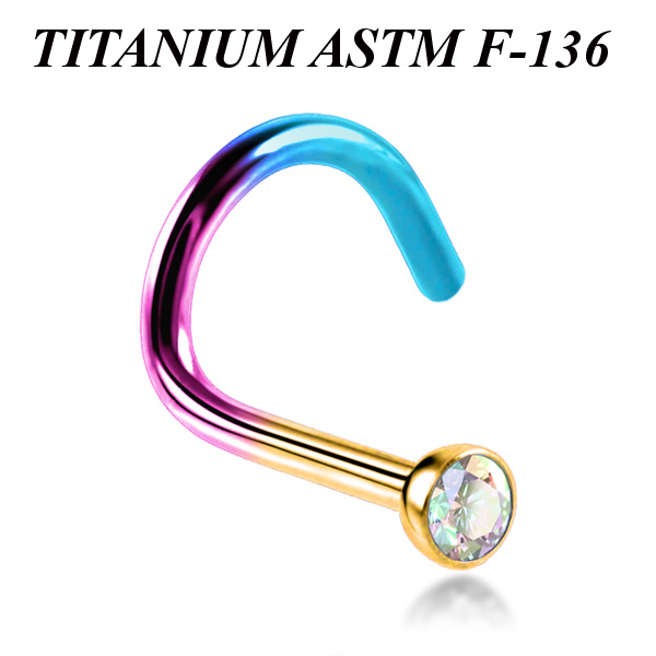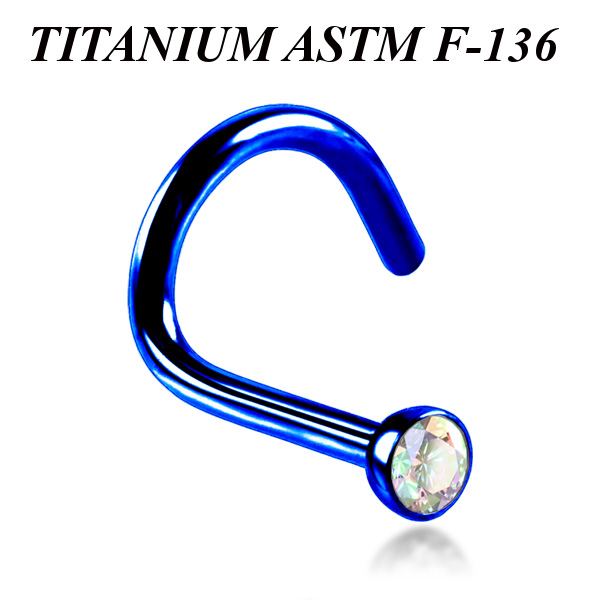 Нострил из имплантационного титана 6Al-4V-Eli ASTM: F-136 с анодированием. Украшен переливающимся фианитом диаметром 2мм.